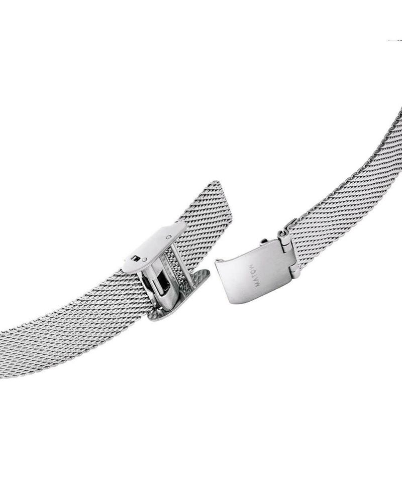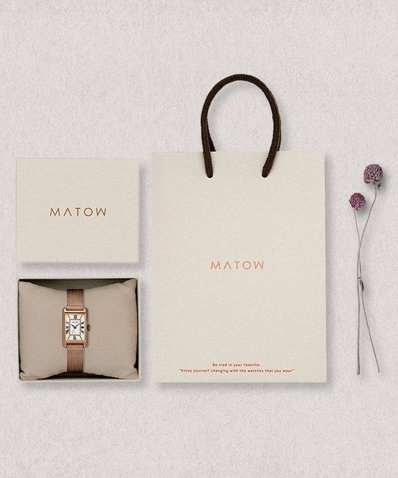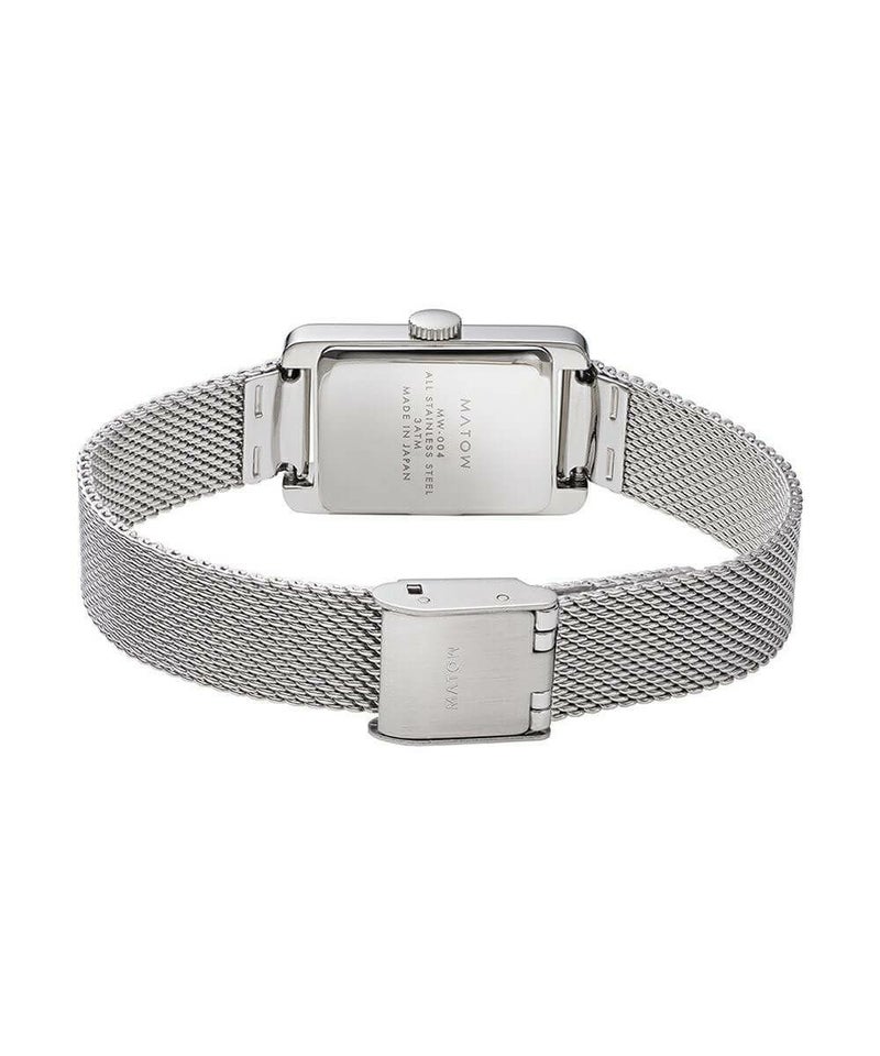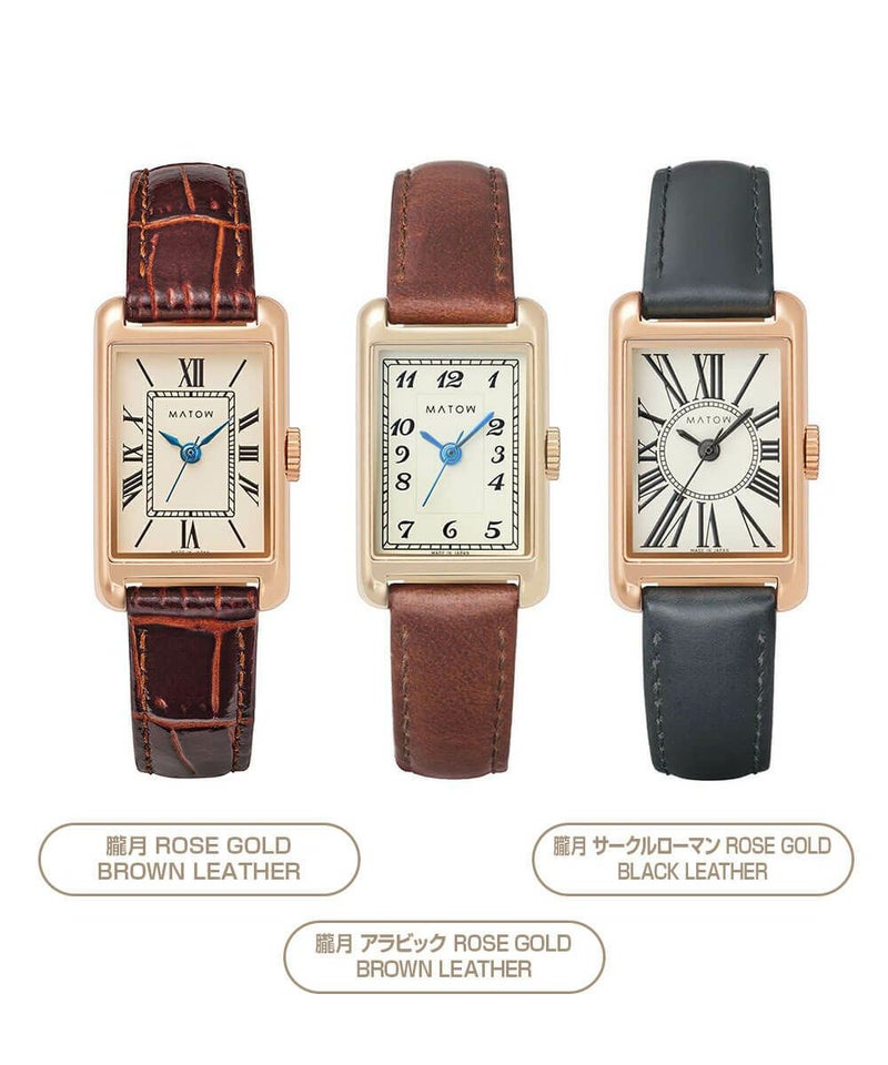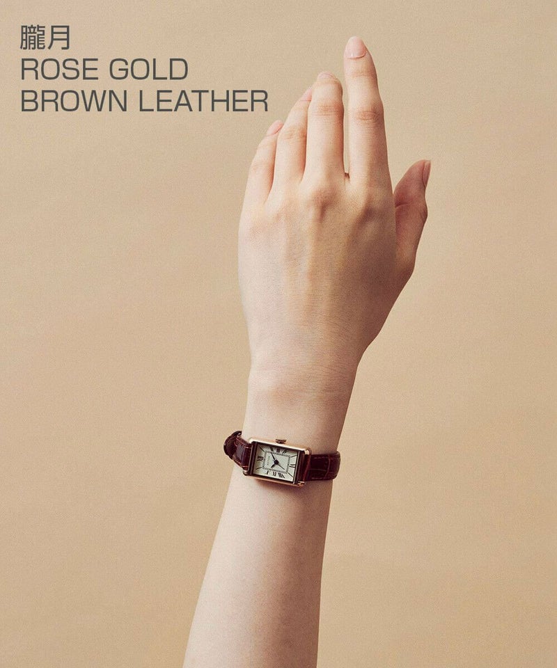 縦29mm×横18mmのコンパクトなレクタングルケースは、ローズゴールドとシルバーの2色展開。型押しのレザーベルトとケース同色のメッシュベルトから、あなただけのスタイルを選べます。