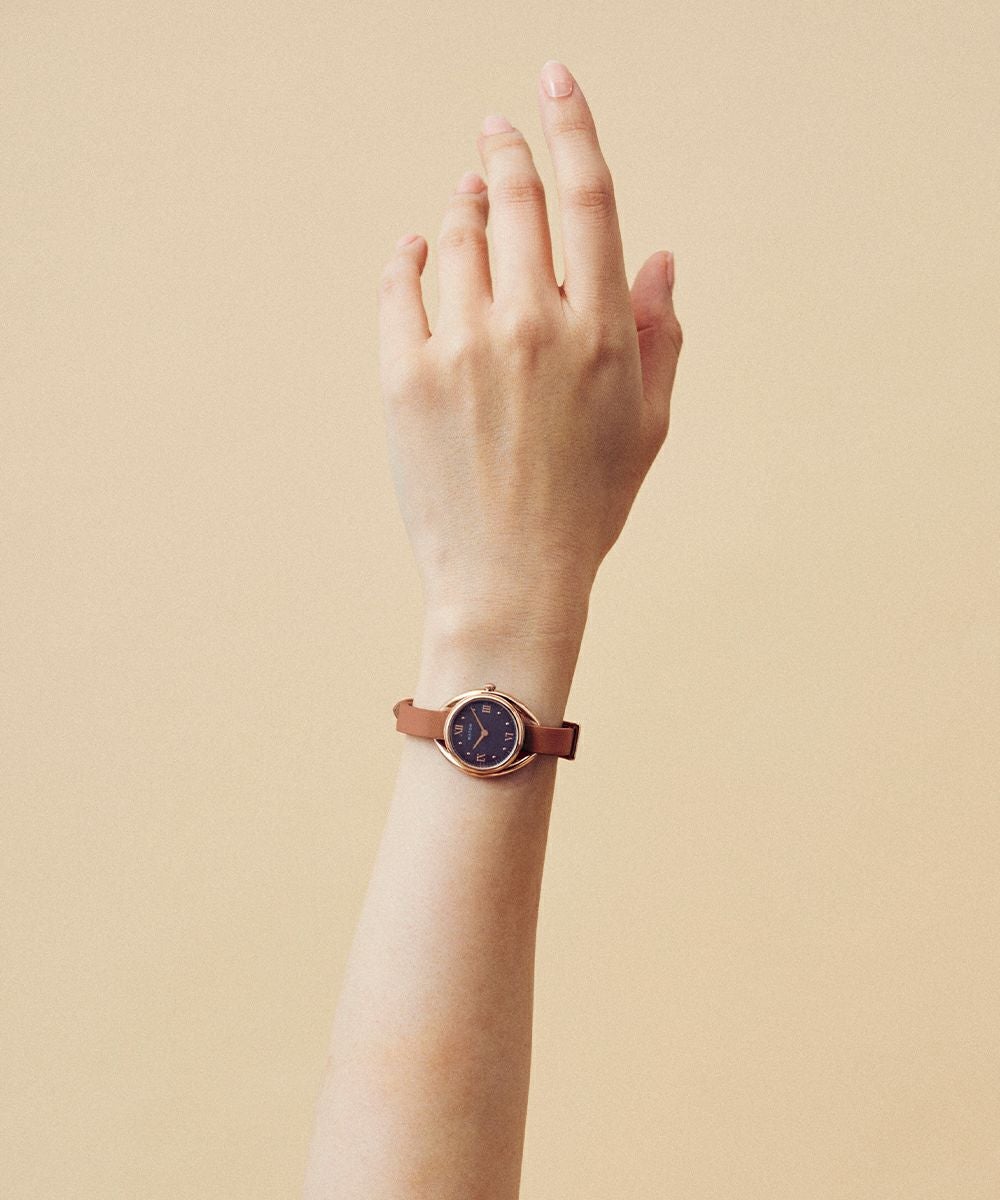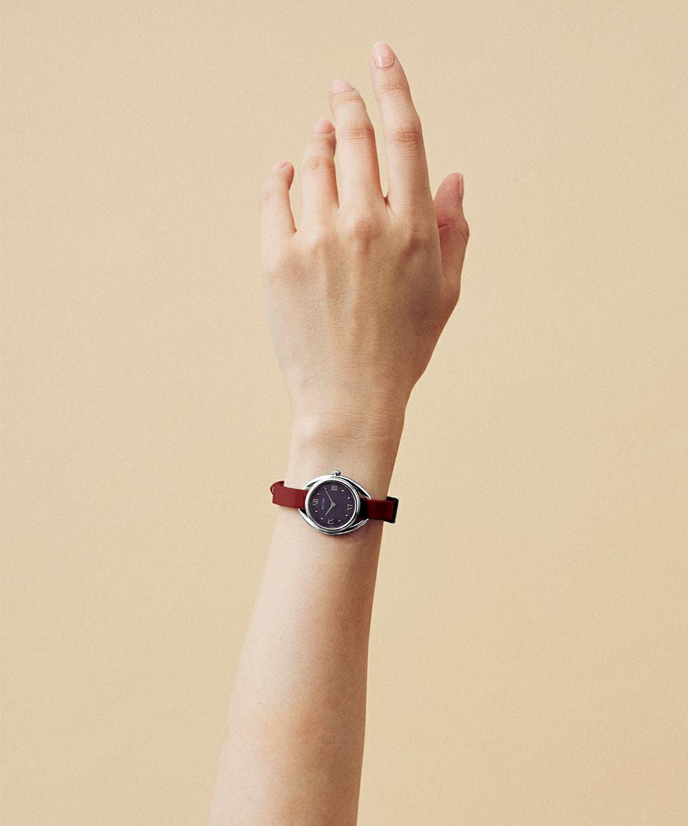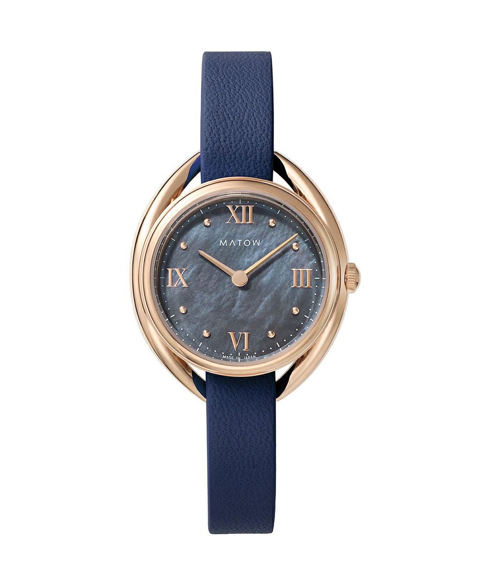 藍炭は、深みのある藍色と炭のような黒が絶妙に混ざり合った、落ち着きと神秘さを併せ持つ色彩。 ブラックマザーオブパールの文字盤が、光の角度によって繊細に輝き、藍炭の色合いにさらなる奥行きを与えます。 この独特な色彩と質感のコントラストが、見るたびに異なる表情を見せ、穏やかな湖面のような静けさと、夜空に浮かぶ星のような神秘的な美しさを手首に纏う感覚を演出します。 上品でありながら大胆なデザインは、日常のどんなシーンにもふさわしく、特別なひと時にも華を添えることでしょう。