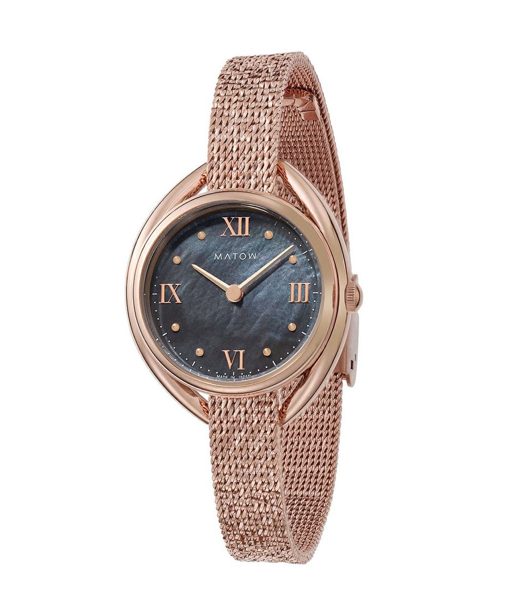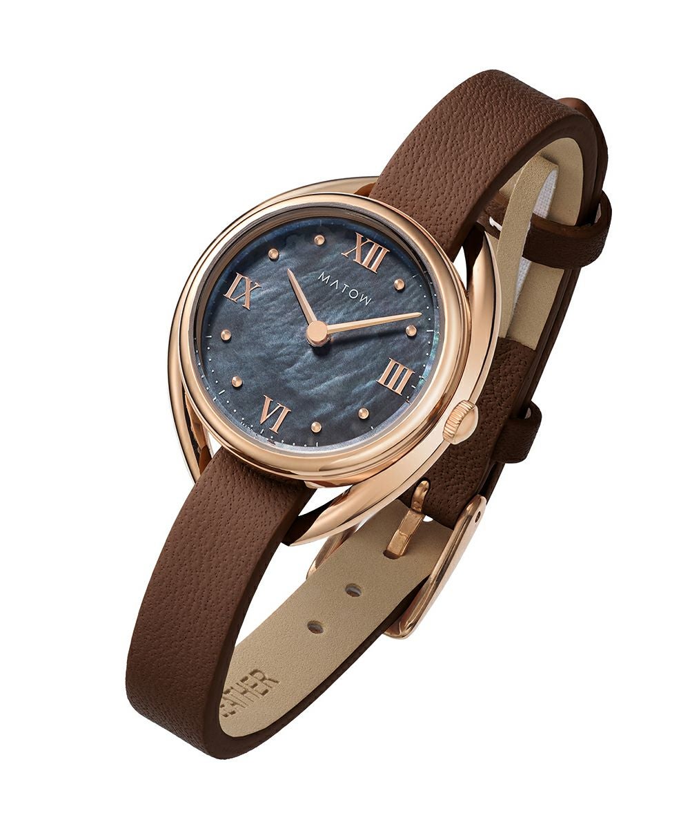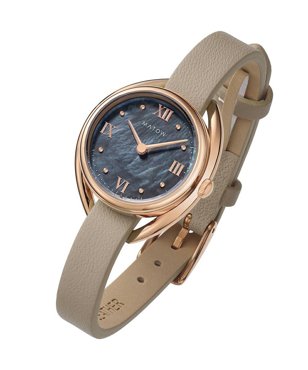 藍炭は、深みのある藍色と炭のような黒が絶妙に混ざり合った、落ち着きと神秘さを併せ持つ色彩。 ブラックマザーオブパールの文字盤が、光の角度によって繊細に輝き、藍炭の色合いにさらなる奥行きを与えます。 この独特な色彩と質感のコントラストが、見るたびに異なる表情を見せ、穏やかな湖面のような静けさと、夜空に浮かぶ星のような神秘的な美しさを手首に纏う感覚を演出します。 上品でありながら大胆なデザインは、日常のどんなシーンにもふさわしく、特別なひと時にも華を添えることでしょう。
