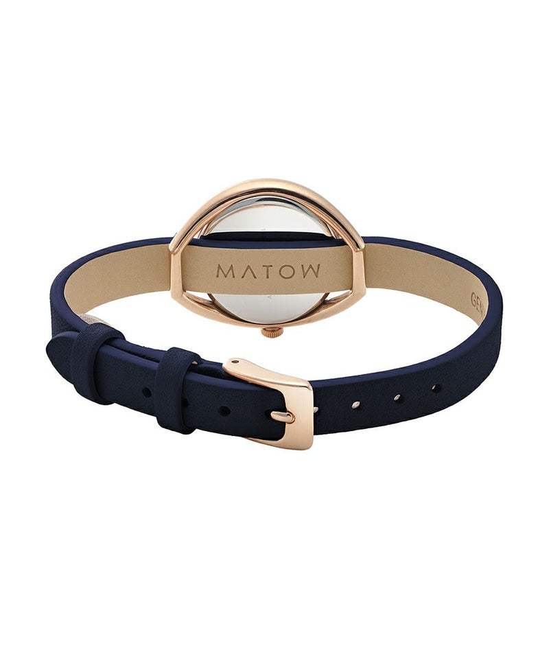 藍炭は、深みのある藍色と炭のような黒が絶妙に混ざり合った、落ち着きと神秘さを併せ持つ色彩。ブラックマザーオブパールの文字盤が、光の角度によって繊細に輝き、藍炭の色合いにさらなる奥行きを与えます。この独特な色彩と質感のコントラストが、見るたびに異なる表情を見せ、穏やかな湖面のような静けさと、夜空に浮かぶ星のような神秘的な美しさを手首に纏う感覚を演出します。上品でありながら大胆なデザインは、日常のどんなシーンにもふさわしく、特別なひと時にも華を添えることでしょう。