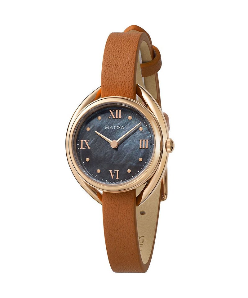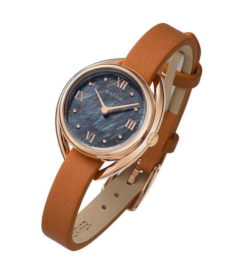 藍炭は、深みのある藍色と炭のような黒が絶妙に混ざり合った、落ち着きと神秘さを併せ持つ色彩。ブラックマザーオブパールの文字盤が、光の角度によって繊細に輝き、藍炭の色合いにさらなる奥行きを与えます。この独特な色彩と質感のコントラストが、見るたびに異なる表情を見せ、穏やかな湖面のような静けさと、夜空に浮かぶ星のような神秘的な美しさを手首に纏う感覚を演出します。上品でありながら大胆なデザインは、日常のどんなシーンにもふさわしく、特別なひと時にも華を添えることでしょう。