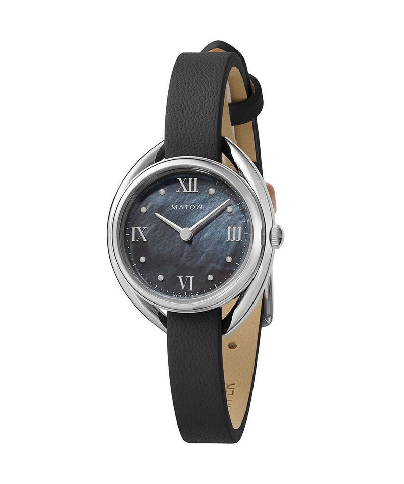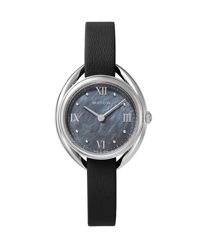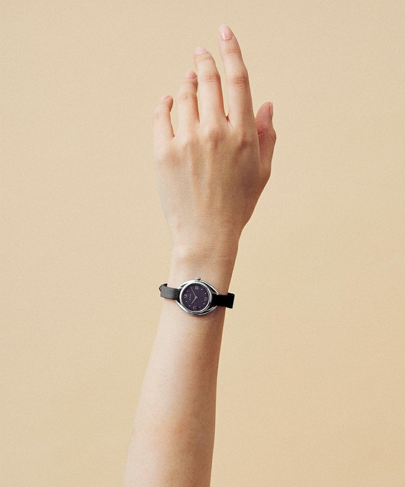 藍炭は、深みのある藍色と炭のような黒が絶妙に混ざり合った、落ち着きと神秘さを併せ持つ色彩。ブラックマザーオブパールの文字盤が、光の角度によって繊細に輝き、藍炭の色合いにさらなる奥行きを与えます。この独特な色彩と質感のコントラストが、見るたびに異なる表情を見せ、穏やかな湖面のような静けさと、夜空に浮かぶ星のような神秘的な美しさを手首に纏う感覚を演出します。上品でありながら大胆なデザインは、日常のどんなシーンにもふさわしく、特別なひと時にも華を添えることでしょう。