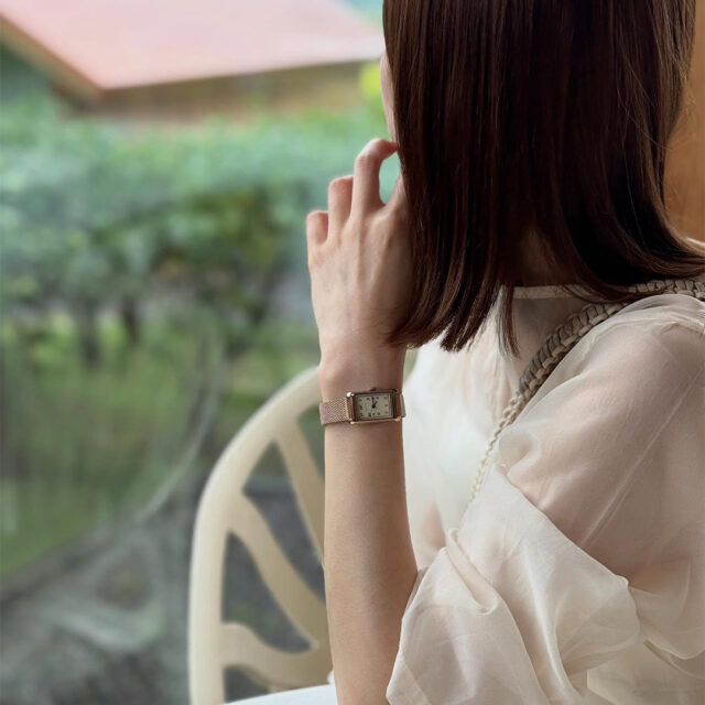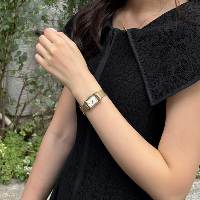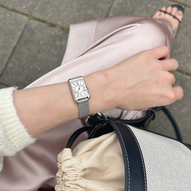 style 055 2025.11.15 関連商品 TSUKI 淡月 / MINI SQUARE ROSE GOLD CHAMPAGNE MESH 30,800 ※価格は掲載当初の価格となります。実際の販売価格と異なる場合がございます。